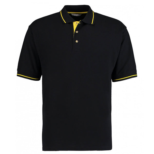Kustom Kit Men's Black/Yellow St Mellion Tipped Cotton Pique Polo Shirt