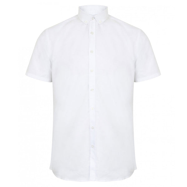 Henbury Men's White Modern Short Sleeve Regular Fit Oxford Shirt
