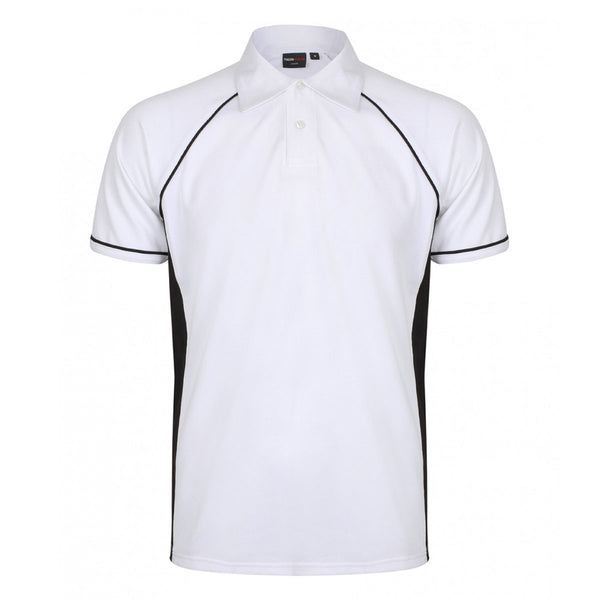 Finden + Hales Men's White/Black Performance Piped Polo Shirt