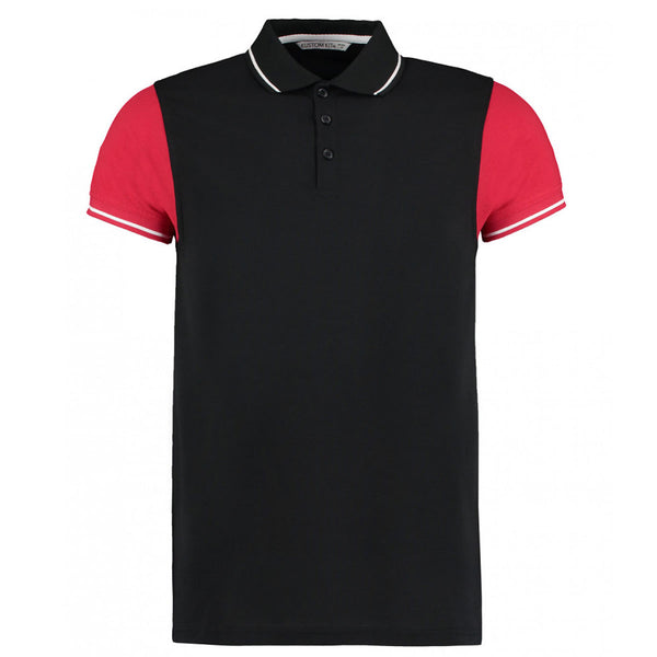 Kustom Kit Men's Black/Red Contrast Tipped Pique Polo Shirt