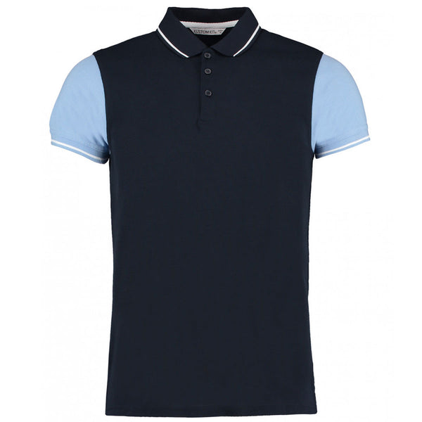 Kustom Kit Men's Navy/Light Blue Contrast Tipped Pique Polo Shirt