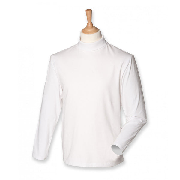 Henbury Men's White Long Sleeve Roll Neck Top