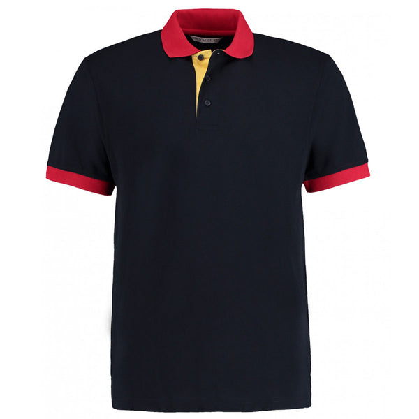 Kustom Kit Men's Navy/Yellow/Red Contrast Poly/Cotton Pique Polo Shirt