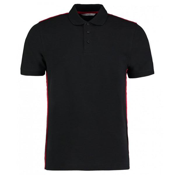 Kustom Kit Men's Black/Red Team Style Slim Fit Pique Polo Shirt