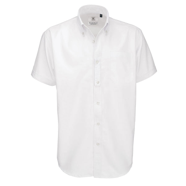 B&C Men's White Oxford Short Sleeve Dress Shirt