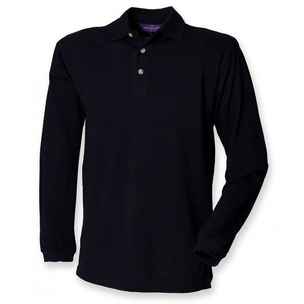 Henbury Men's Navy Long Sleeve Cotton Pique Polo Shirt