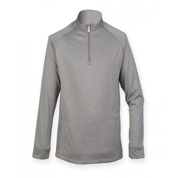Henbury Men's Grey Marl Zip Neck Wicking Top