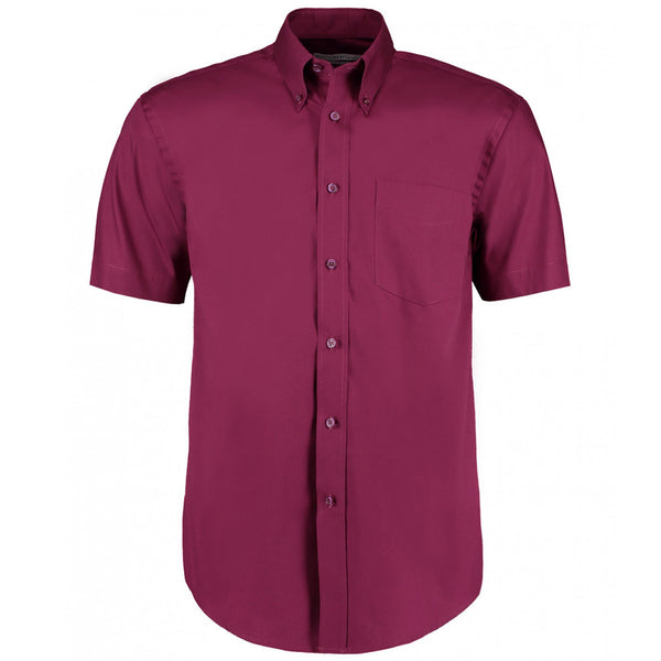 Kustom Kit Men's Burgundy Premium Short Sleeve Classic Fit Oxford Shirt