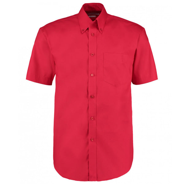 Kustom Kit Men's Red Premium Short Sleeve Classic Fit Oxford Shirt