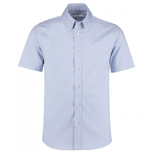 Kustom Kit Men's Light Blue Premium Short Sleeve Tailored Fit Oxford Shirt