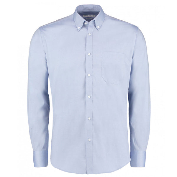 Kustom Kit Men's Light Blue Premium Long Sleeve Slim Fit Oxford Shirt