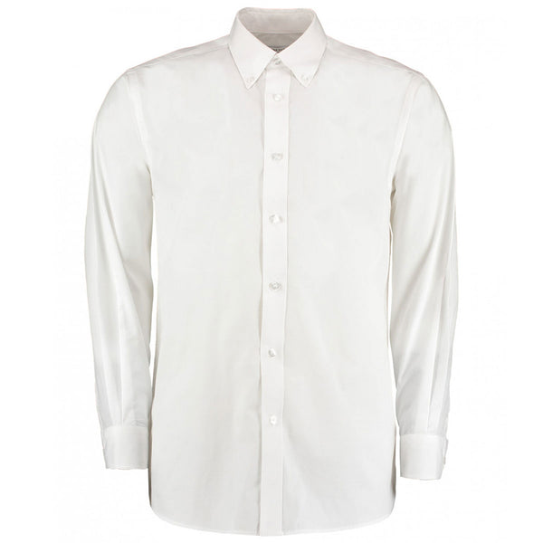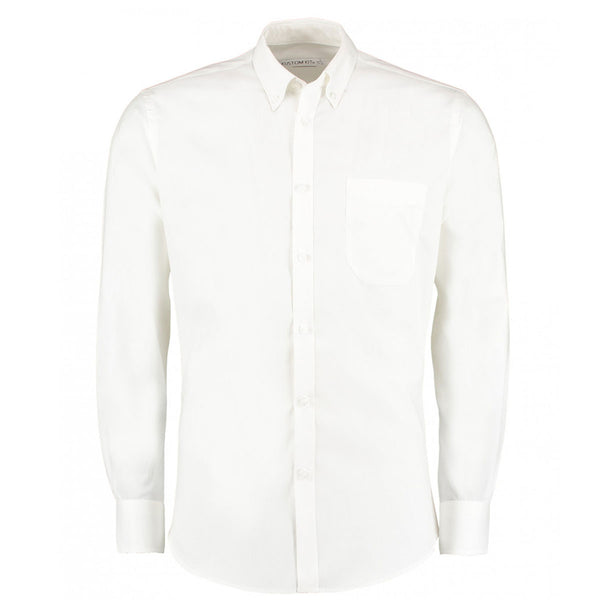 Kustom Kit Men's White Premium Long Sleeve Slim Fit Oxford Shirt