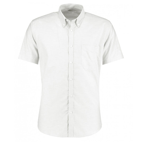 Kustom Kit Men's White Slim Fit Short Sleeve Oxford Shirt