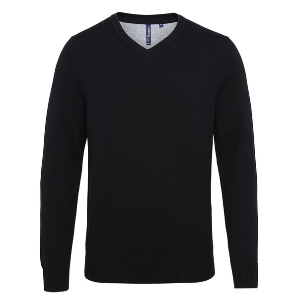 Asquith & Fox Men's Black Cotton Blend V-Neck Sweater