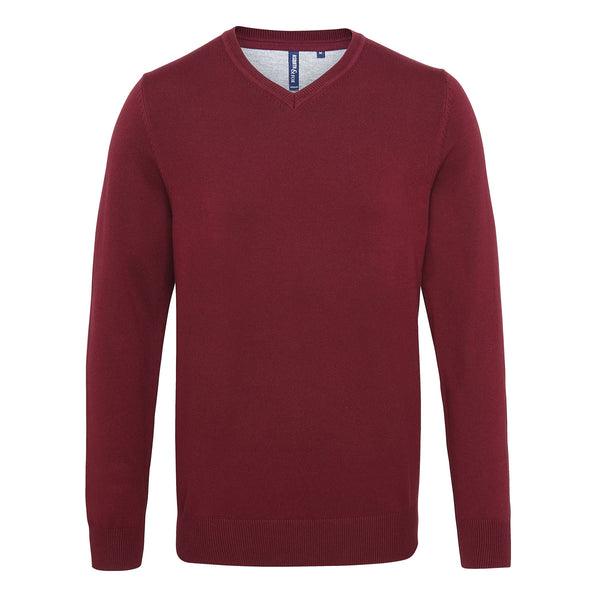 Asquith & Fox Men's Burgundy Cotton Blend V-Neck Sweater