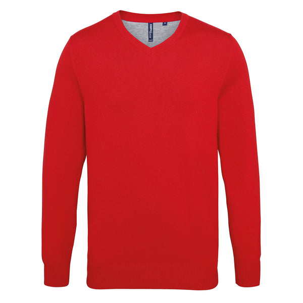 Asquith & Fox Men's Cherry Red Cotton Blend V-Neck Sweater
