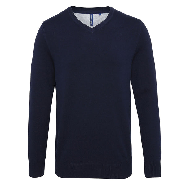 Asquith & Fox Men's French Navy Cotton Blend V-Neck Sweater