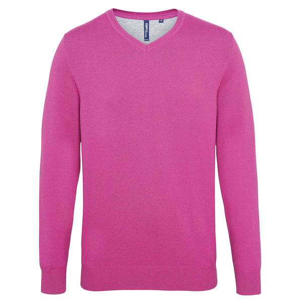 Asquith & Fox Men's Orchid Heather Cotton Blend V-Neck Sweater