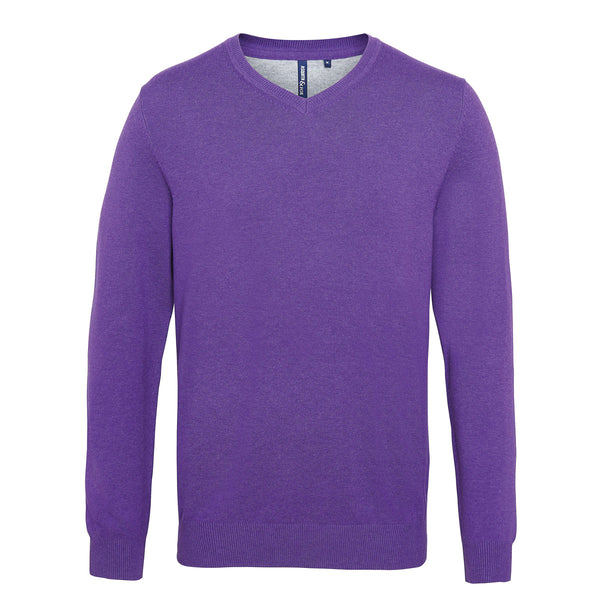 Asquith & Fox Men's Purple Heather Cotton Blend V-Neck Sweater