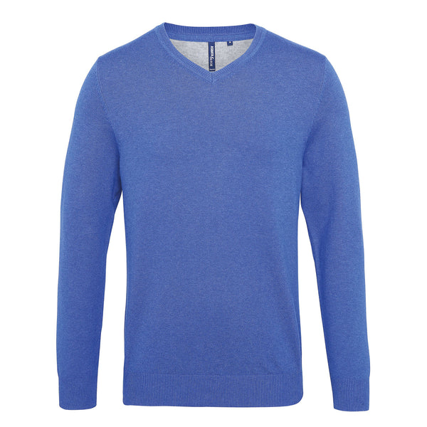 Asquith & Fox Men's Royal Heather Cotton Blend V-Neck Sweater