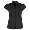 Offering a refreshing alternative to a business-like shirt, the Kustom Kit Women's Black Cap Sleeve V Neck Tailored Continental Blouse is still just as smart. Perfect to be used when creating your very own corporate uniform, adding a custom logo to this blouse is easy. Providing plenty of free space for your logo to be added, this easy-iron blouse features a distinctive V neck, trendy square buttons and bust, front and back darts to instantly create a flattering shape for the wearer.