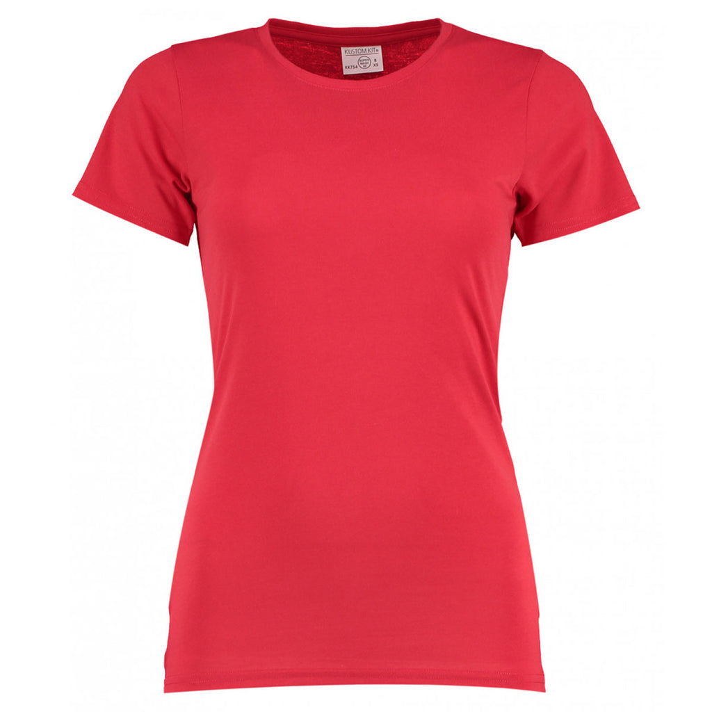 Featuring a fashionable, trendy fit and made using super soft material, the Kustom Kit Women's Red Superwash 60 degree C T-Shirt is both comfortable and stylish. Simplistic and guaranteed to complement a variety of casual working environments, this T-shirt offers plenty of free space for you to add your very own custom logo - ideal for creating a customised uniform for your company workforce. Featuring a flattering ribbed crew neck, this shirt can be washed at a high temperature and is easy to look after at home.