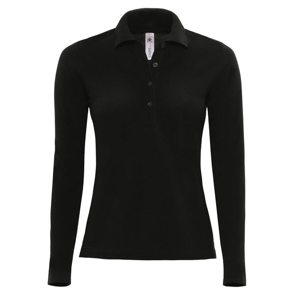 B&C Women's Black Safran Pure Long Sleeve Polo