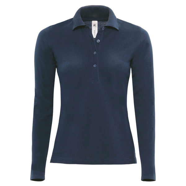 B&C Women's Navy Safran Pure Long Sleeve Polo