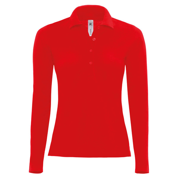 B&C Women's Red Safran Pure Long Sleeve Polo