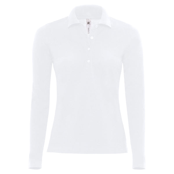 B&C Women's White Safran Pure Long Sleeve Polo