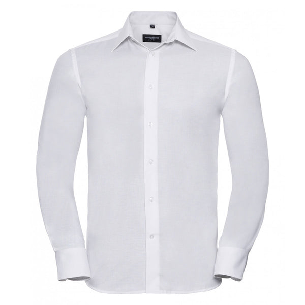 Russell Collection Men's White Long Sleeve Tailored Oxford Shirt