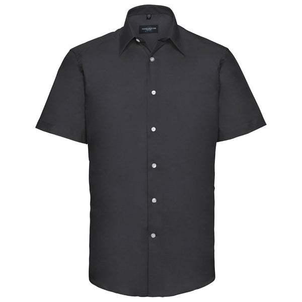Russell Collection Men's Black Short Sleeve Easy Care Cotton Poplin Shirt