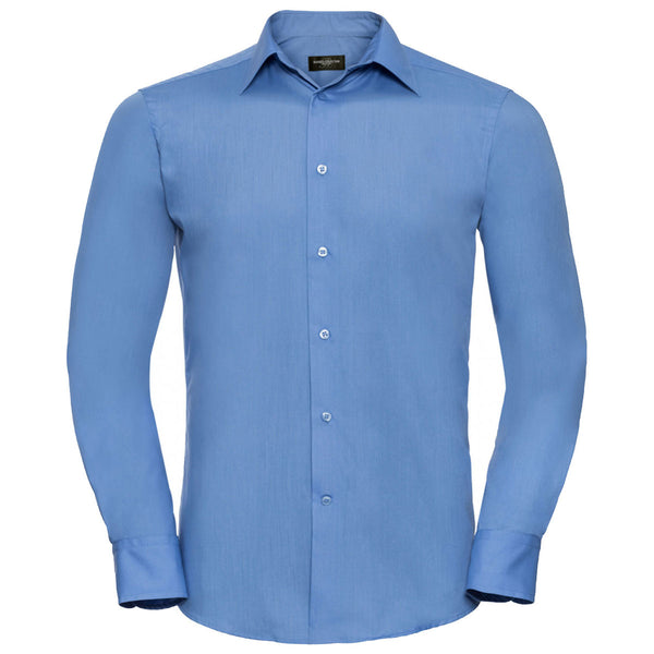 Russell Collection Men's Corporate Blue Long Sleeve Easy Care Poplin Shirt