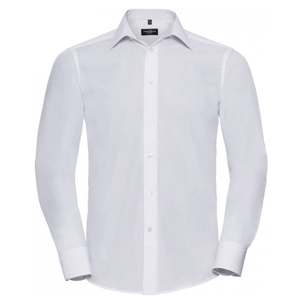 Russell Collection Men's White Long Sleeve Tailored Poplin Shirt