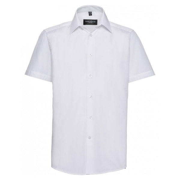 Russell Collection Men's White Short Sleeve Tailored Poplin Shirt