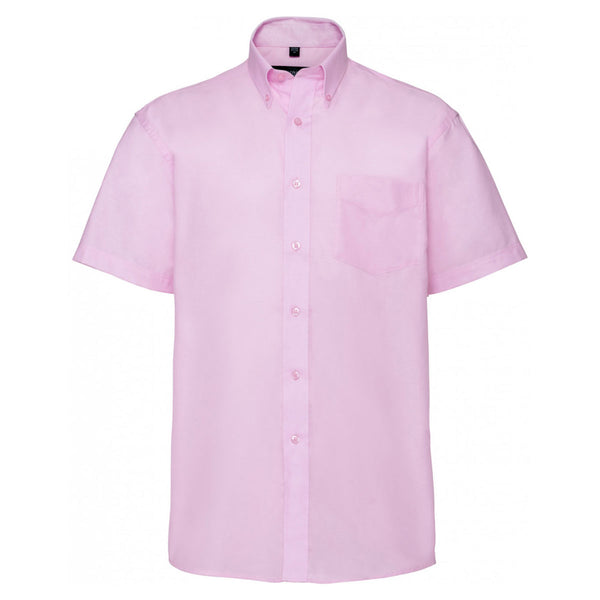 Russell Collection Men's Classic Pink Short Sleeve Easy Care Oxford Shirt