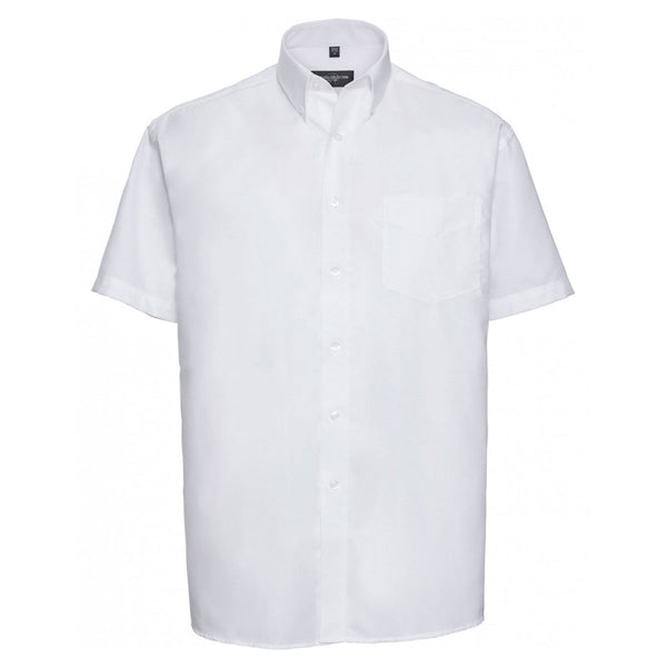 Russell Collection Men's White Short Sleeve Tailored Oxford Shirt