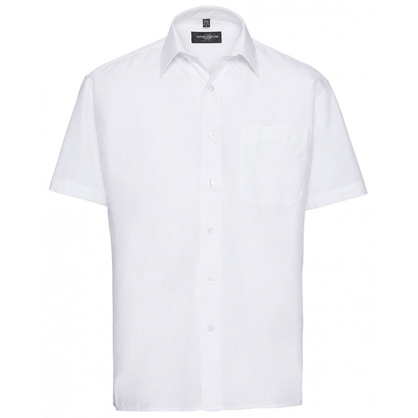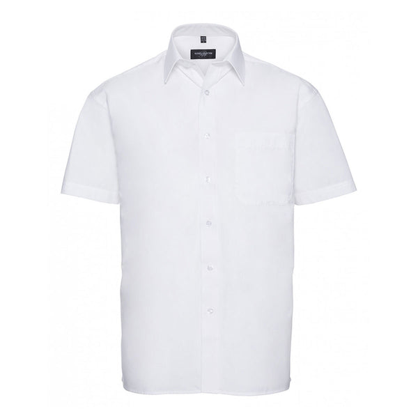 Russell Collection Men's White Short Sleeve Easy Care Cotton Poplin Shirt