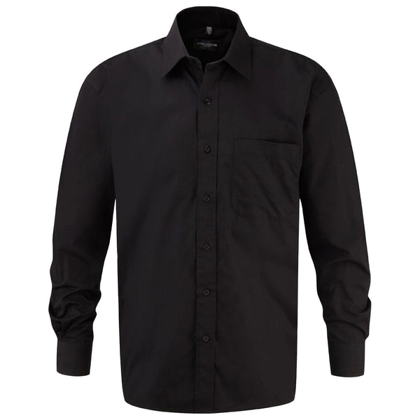 Russell Collection Men's Black Long Sleeve Easy Care Poplin Shirt