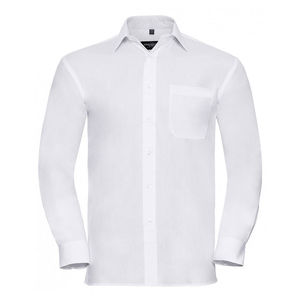 Russell Collection Men's White Long Sleeve Easy Care Cotton Poplin Shirt