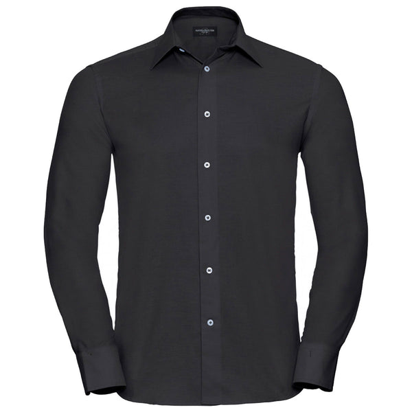 Russell Collection Men's Black Long Sleeve Tailored Oxford Shirt