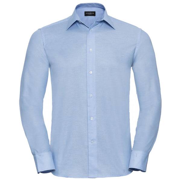 Russell Collection Men's Oxford Blue Long Sleeve Tailored Oxford Shirt