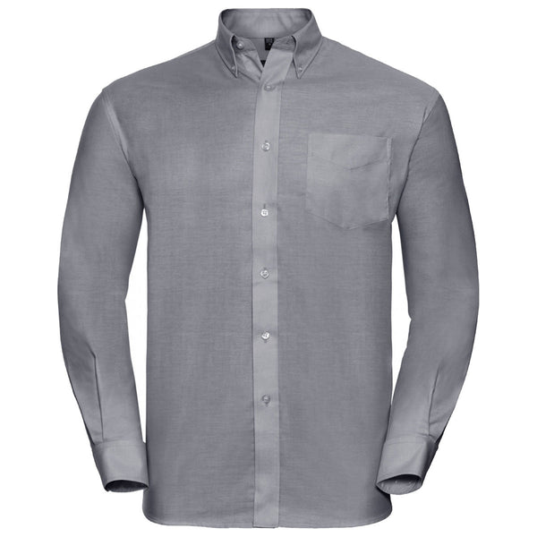Russell Collection Men's Silver Long Sleeve Easy Care Oxford Shirt