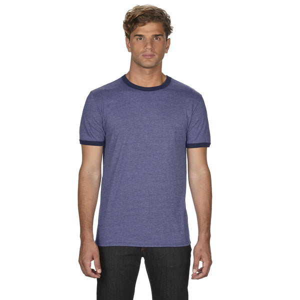 Anvil Men's Heather Blue/True Navy Lightweight Ringer T-Shirt