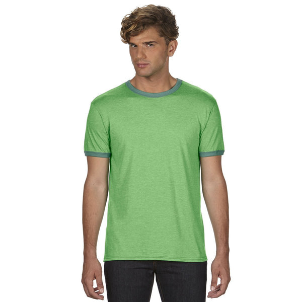 Anvil Men's Heather Grey/True Kelly Green Lightweight Ringer T-Shirt