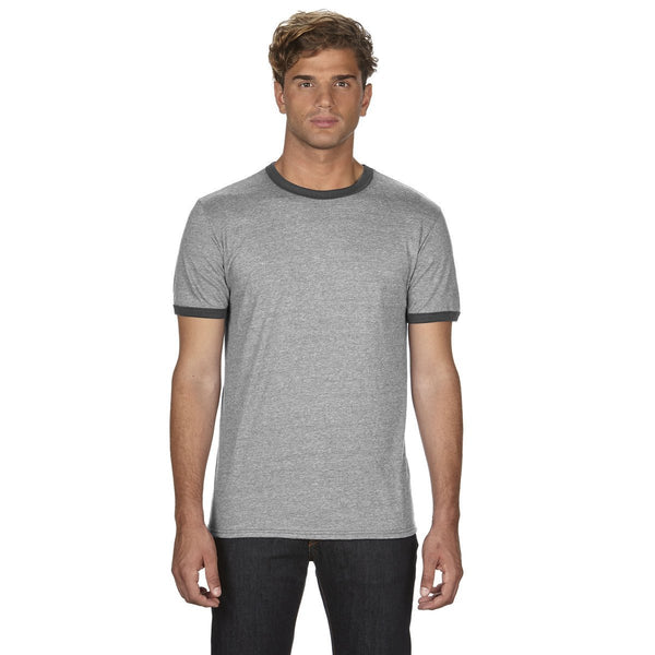 Anvil Men's Heather Grey/True Heather Dark Grey Lightweight Ringer T-Shirt