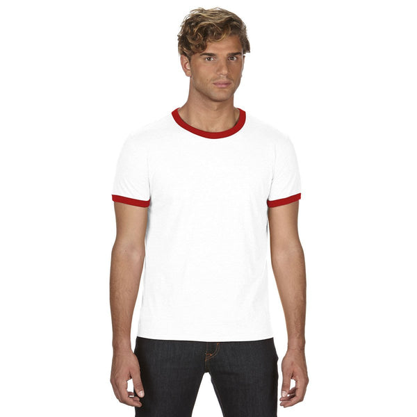Anvil Men's White/Red Lightweight Ringer T-Shirt