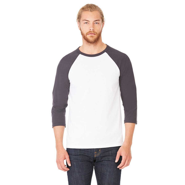 Bella + Canvas Unisex White/Dark Grey 3/4 Sleeve Baseball T-Shirt