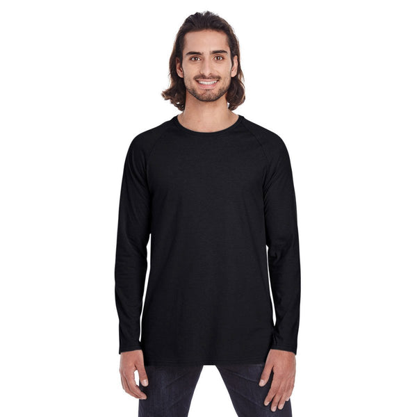 Anvil Men's Black Lightweight Long & Lean Raglan Long Sleeve T-Shirt