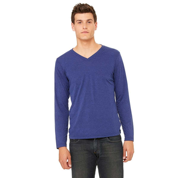 Bella + Canvas Unisex Blue Triblend Jersey Long-Sleeve V-Neck T-Shirt